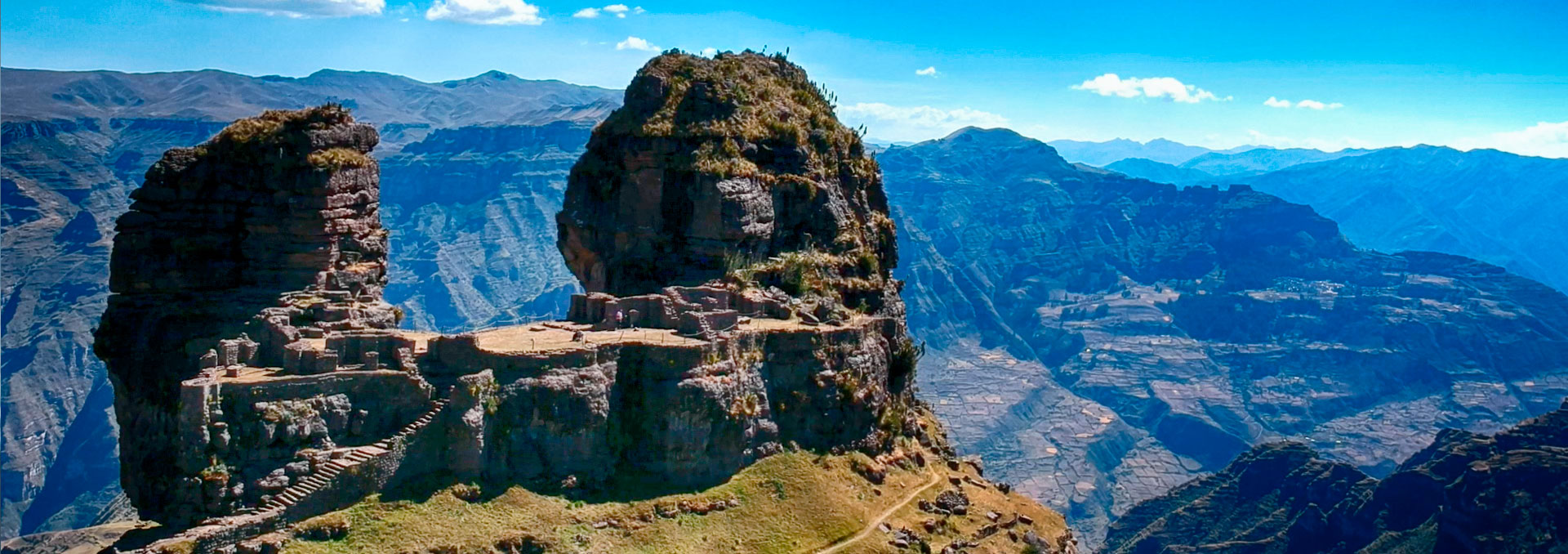 The first 1.5-hour stretch offers breathtaking views of the Apurimac Canyon, one of Peru’s deepest, with dramatic cliffs and stunning landscapes. At the Waqrapukara viewpoint, you’ll get your first glimpse of the ancient fortress perched on the canyon’s edge. We’ll then descend a steep path to the site, with views of the Apurimac River below.